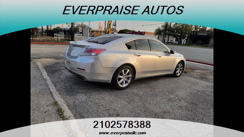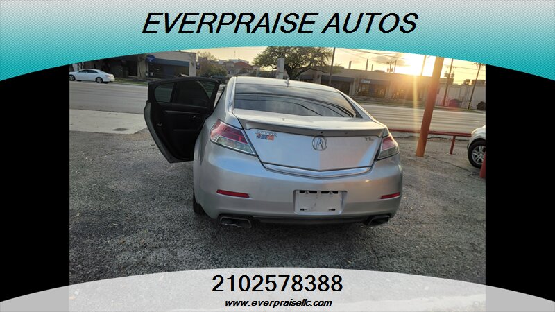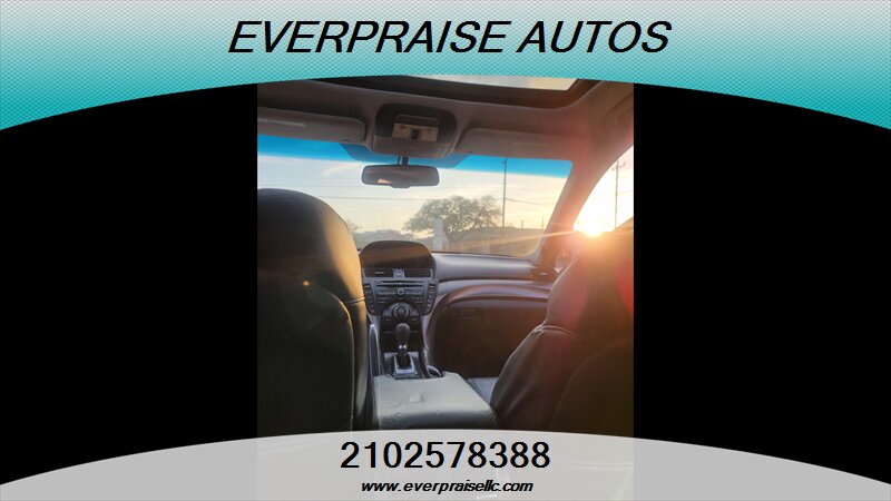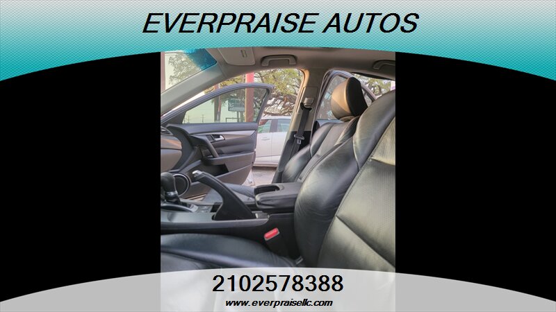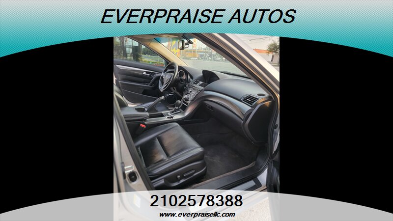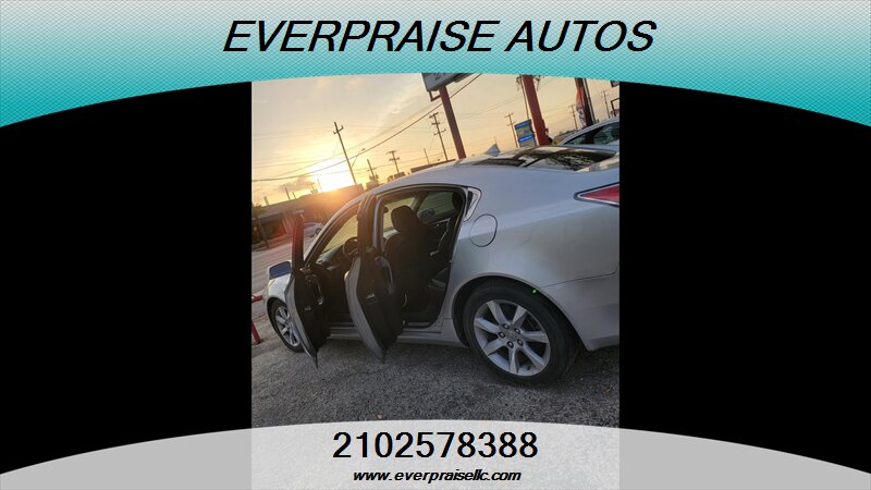 2012 Acura TL w/Tech — Silver Moon exterior with Ebony leather interior. Powered by a 3.5L V6 (280 hp / 254 ft-lbs), this TL returns about 20 MPG city and 29 MPG highway and is in excellent overall condition. Factory-equipped features: - Technology package with navigation and voice recognition (AcuraLink-enabled) - Premium ELS surround audio with satellite/XM and HD radio, plus USB/iPod integration and Bluetooth HandsFreeLink - Rearview camera and on-screen guidance - Power moonroof - Heated, power-adjustable front seats with driver memory and premium leather seating surfaces - Dual-zone automatic climate control - Smart Key keyless entry and push-button start - Steering-wheel audio and cruise controls, multifunction display - Alloy wheels, fog lights, automatic headlights - Safety systems: ABS, Vehicle Stability Assist (VSA), traction control, full airbag suite, tire pressure monitoring 2012 Acura TL con paquete Tech — exterior Silver Moon y tapicería de cuero Ebony. Con motor 3.5L V6 (280 hp / 254 lb-pie), rinde aproximadamente 20 MPG en ciudad y 29 MPG en carretera; el vehículo está en excelente estado general. Características de fábrica: - Paquete Technology con navegación y reconocimiento de voz (compatible con AcuraLink) - Equipo de audio premium ELS surround con radio satelital/XM y HD, integración USB/iPod y Bluetooth HandsFreeLink - Cámara trasera con guía en pantalla - Techo solar eléctrico - Asientos delanteros calefactables y ajustables eléctricamente con memoria para el conductor y asientos de cuero de alta calidad - Control automático de clima de doble zona - Smart Key con entrada sin llave y arranque por botón - Controles de audio y control de crucero en el volante, pantalla multifunción - Llantas de aleación, faros antiniebla, faros automáticos - Sistemas de seguridad: ABS, Vehicle Stability Assist/VSA, control de tracción, paquete completo de airbags, monitor de presión de neumáticos ¡Listo para manejar y disfrutar! Everpraise LLC 7916 Fredericksburg Rd San Antonio, TX 78229 (210) 257-8388