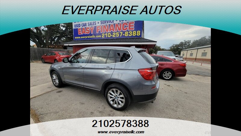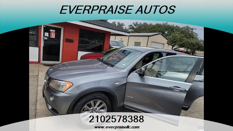 Clean, capable and comfortable — this 2014 BMW X3 xDrive28i in Gray with a rich Brown interior is powered by a 2.0L turbocharged I4 making 240 hp and 260 lb-ft, returns about 21 MPG city / 28 MPG highway, and has under 124,000 miles (averaging less than 10,000 miles per year). It’s in excellent overall condition. Factory-standard features include BMW xDrive all-wheel drive, a smooth automatic transmission, ABS with stability and traction control, front/side/curtain airbags, power windows/locks/mirrors, remote keyless entry, power-adjustable front seats with split-folding rear seating, dual-zone automatic climate control, tilt/telescoping steering wheel with audio and cruise controls, iDrive controller with center display, Bluetooth hands-free and audio streaming, AM/FM/CD/USB/AUX inputs, alloy wheels, fog lamps and roof rails — all the practical comfort, safety and tech you expect from BMW. Friendly, confident driving with everyday efficiency and premium appointments. Everpraise LLC 7916 Fredericksburg Rd San Antonio, TX 78229 (210) 257-8388
