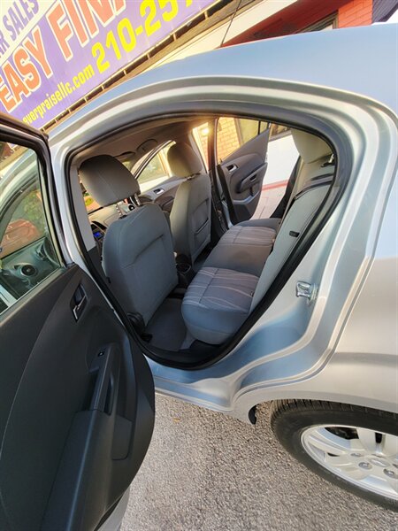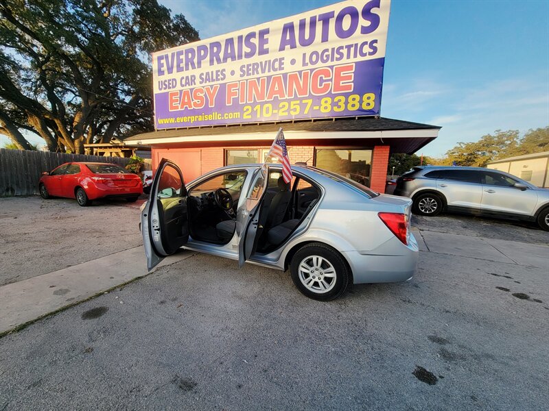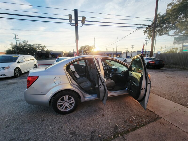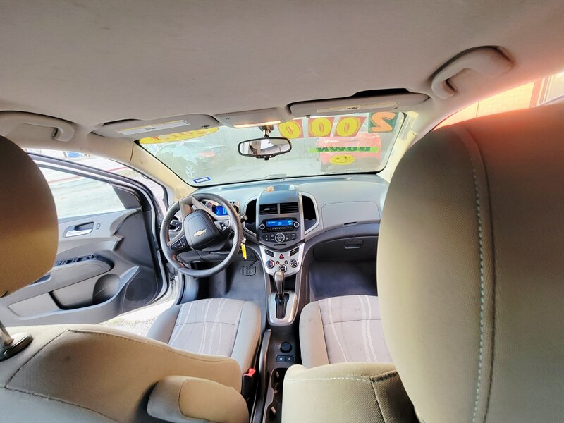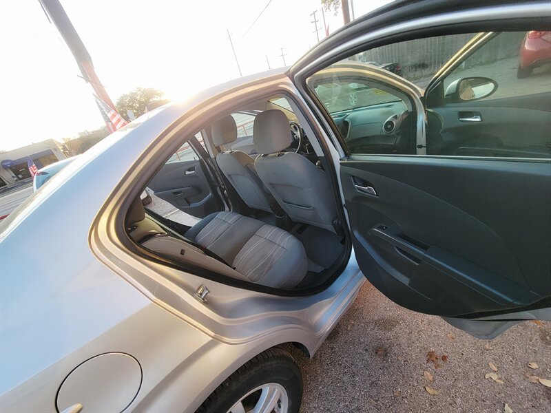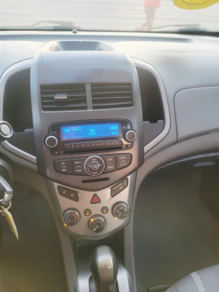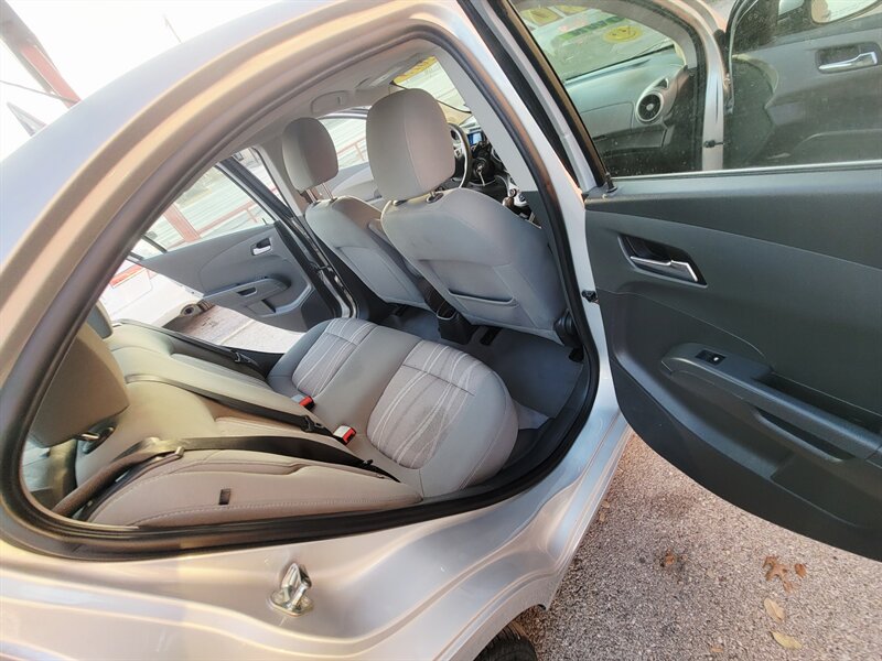The 2015 Chevrolet Sonic LT Auto combines efficiency and style with its striking Red Hot exterior and Jet Black/Brick interior. Powered by a responsive Ecotec 1.8L I4 engine, it delivers 138 horsepower and 125 ft-lbs of torque, ensuring a lively driving experience. This compact sedan is equipped with a range of factory features, including a touchscreen infotainment system, Bluetooth connectivity, a rearview camera, and keyless entry for added convenience. With fuel efficiency ratings of 25 MPG in the city and 35 MPG on the highway, the Sonic is designed for both urban and long-distance travel. This vehicle is in excellent overall condition, making it a reliable choice for your next drive.