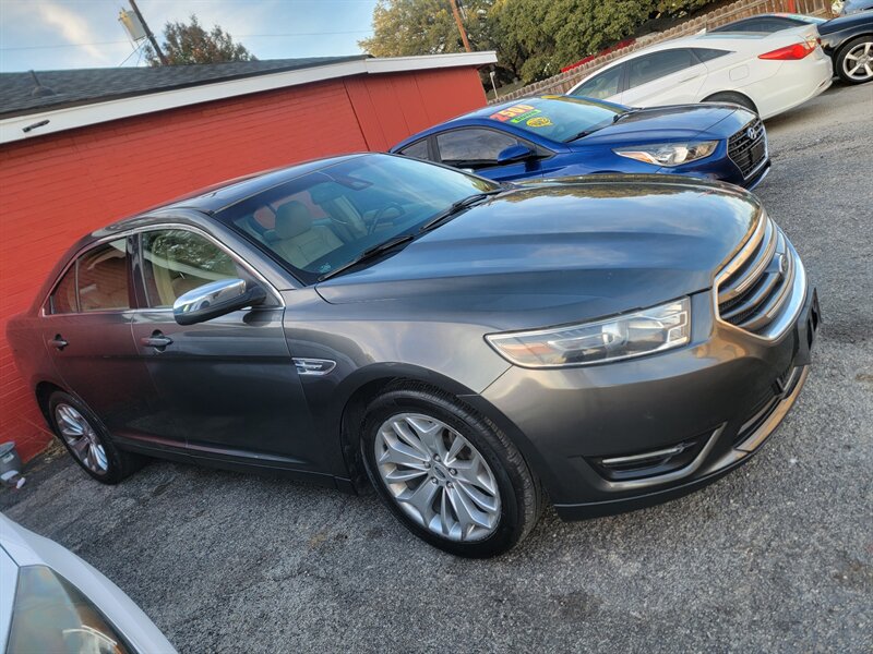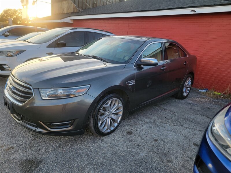 Bright, comfortable and ready to roll — this 2017 Ford Taurus Limited in Shadow Black with a Dune interior is in excellent overall condition. Powered by a smooth 3.5L V6 making 288 hp and 254 lb-ft of torque, it delivers a balanced blend of power and efficiency (EPA-estimated 18 MPG city / 27 MPG highway). Factory-equipped for comfort and convenience with leather-trimmed seating, heated/cooled front seats, power-adjustable front seats with driver memory, dual-zone automatic climate control, keyless entry with remote start, and a Ford SYNC infotainment system with Bluetooth and steering-wheel audio controls. Safety and daily-drive ease are covered by a rearview camera, ABS, stability and traction control, full front and side airbags, power windows/locks/mirrors, and alloy wheels — all wrapped in a refined package that still feels like new. Everpraise LLC 7916 Fredericksburg Rd San Antonio, TX 78229 (210) 257-8388