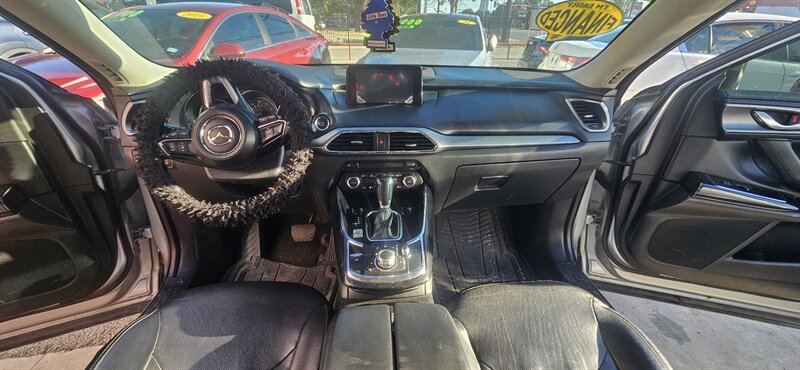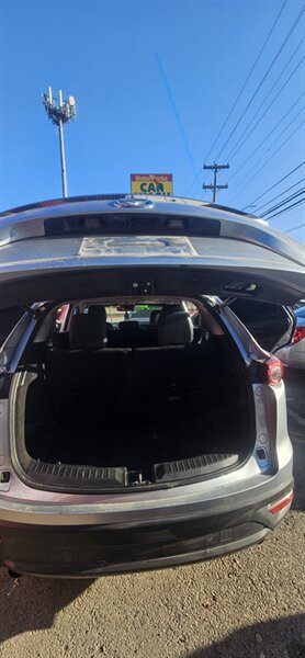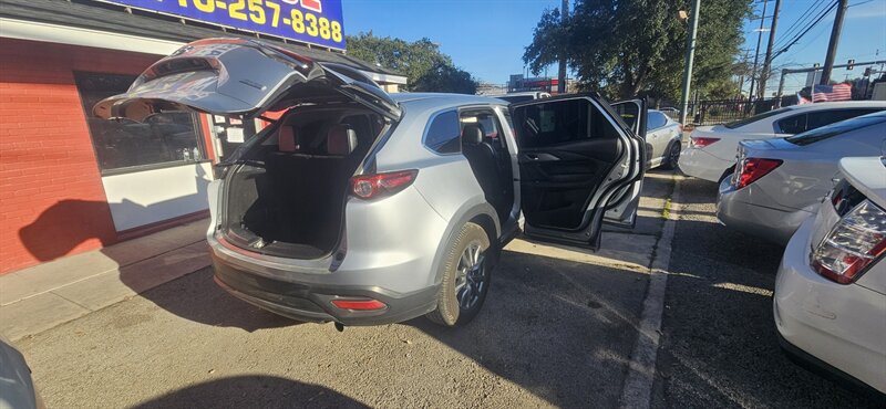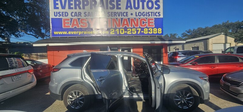 Bright Sonic Silver Metallic meets a sleek Black interior in this excellent-condition 2018 Mazda CX-9 Touring — powered by a SKYACTIV-G 2.5L Turbo I4 (250 hp, 310 lb-ft) with an efficient 22 MPG city / 28 MPG highway. Factory equipment includes the SKYACTIV-Drive automatic transmission, Mazda Connect infotainment with a 7-inch display, Bluetooth hands-free/streaming, USB inputs, rearview camera, cruise control and steering-wheel audio controls, keyless entry with push-button start, automatic headlights with daytime running lights, 18-inch alloy wheels, power windows/locks/mirrors, dual-zone automatic climate control, and versatile 2nd/3rd-row seating for family and cargo. Safety basics are covered with ABS, stability/traction control and multiple airbags for confident, everyday driving. Ready to go and cheerful to drive! Everpraise LLC 7916 Fredericksburg Rd San Antonio, TX 78229 (210) 257-8388